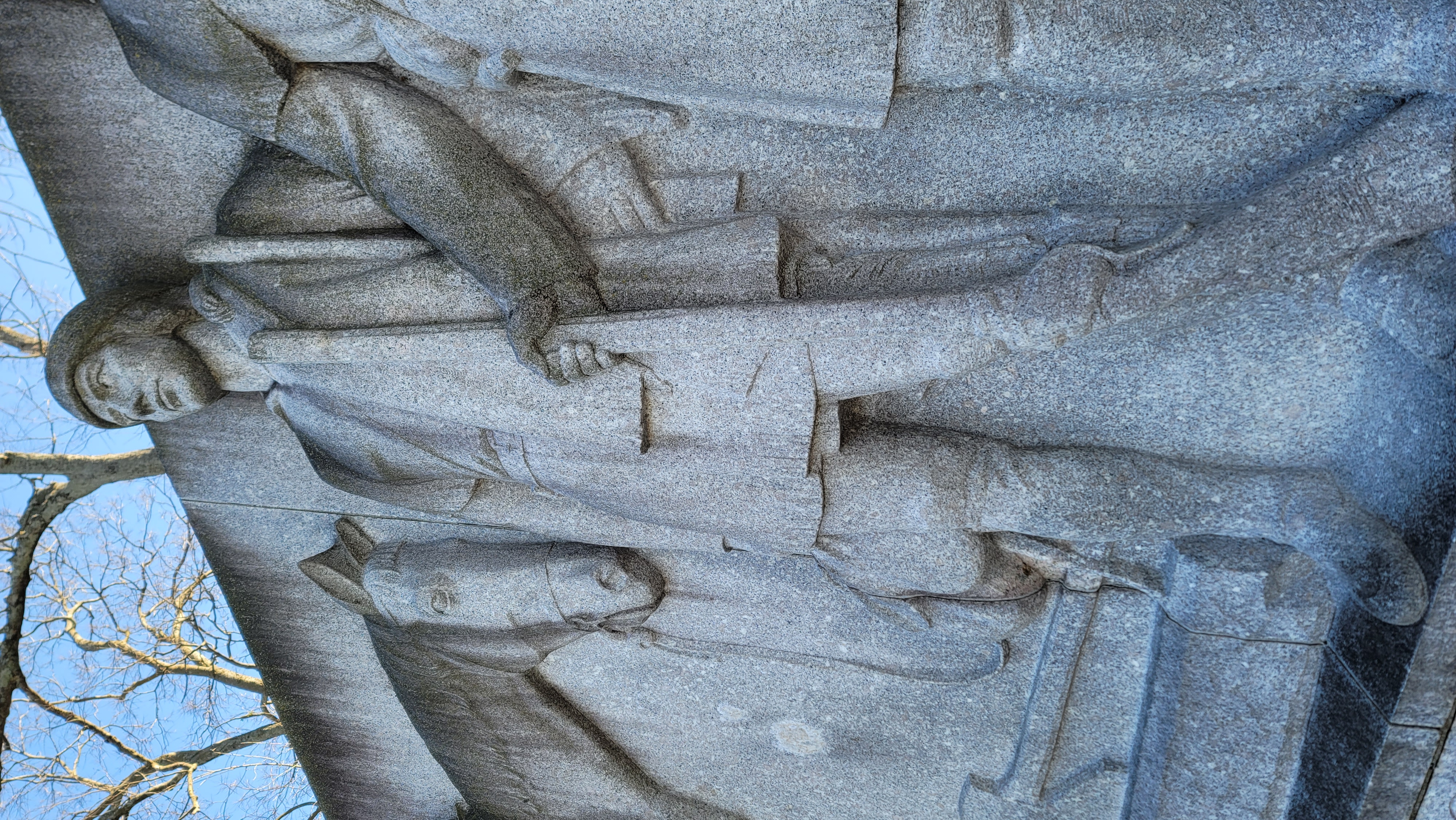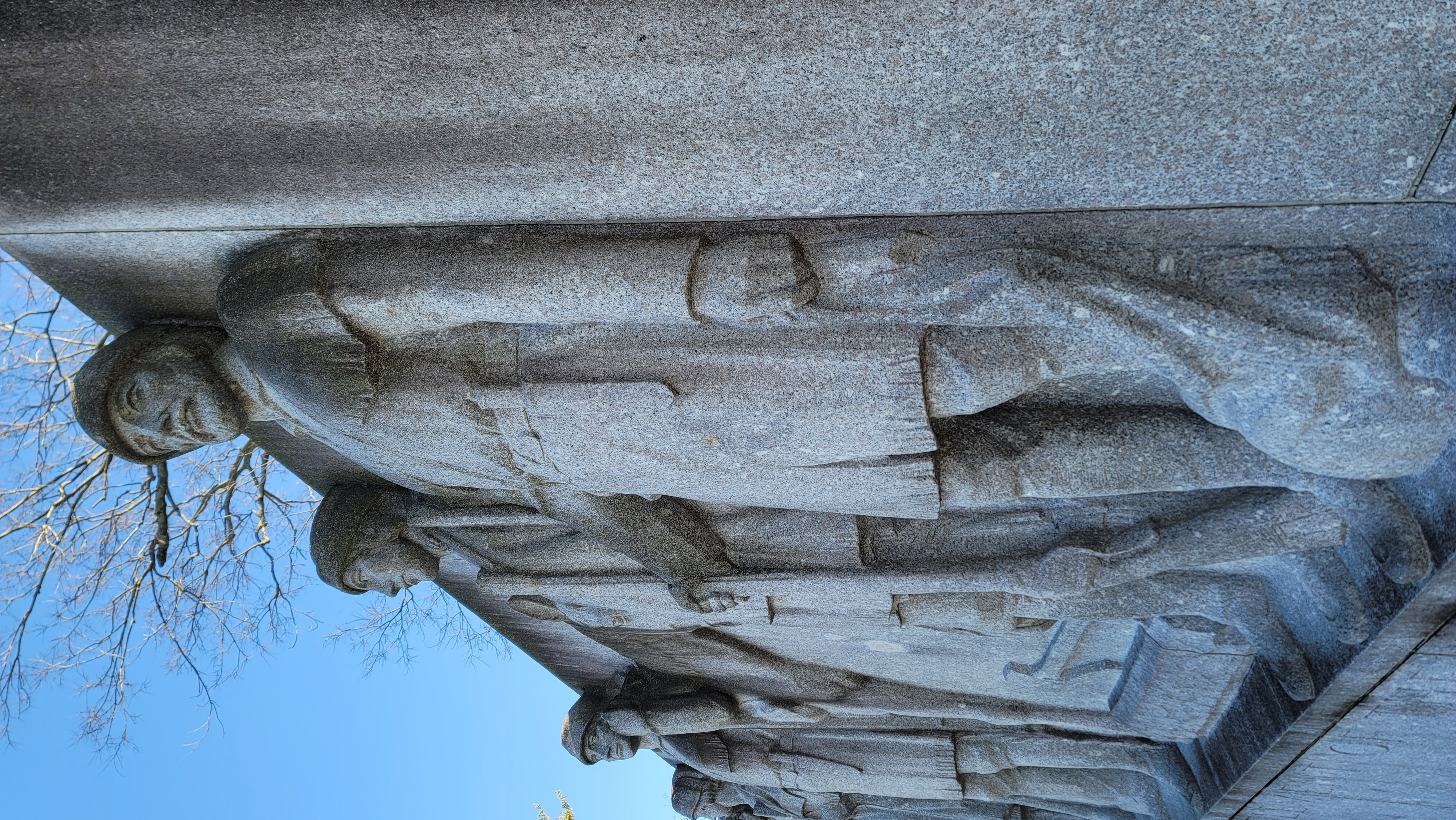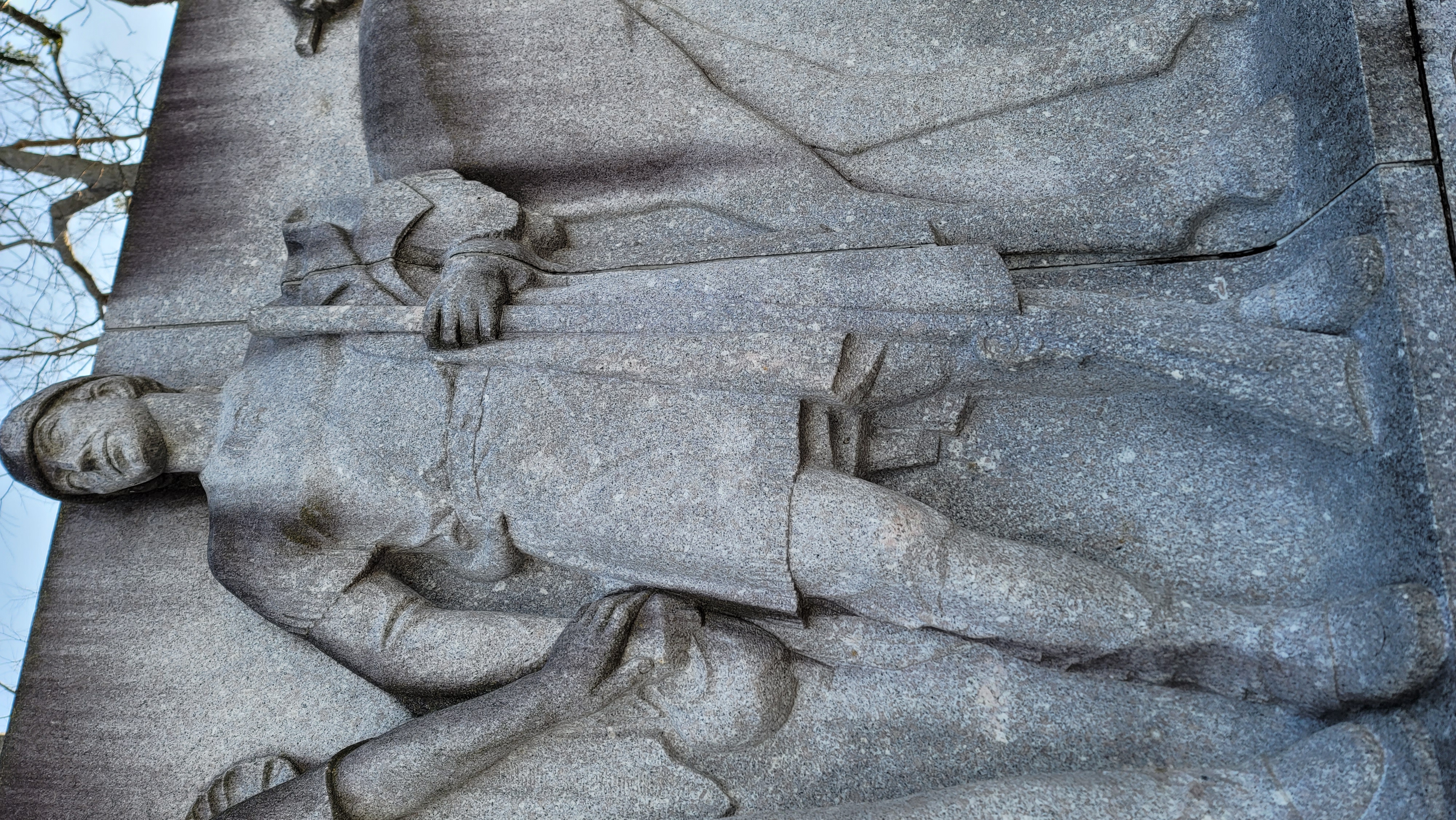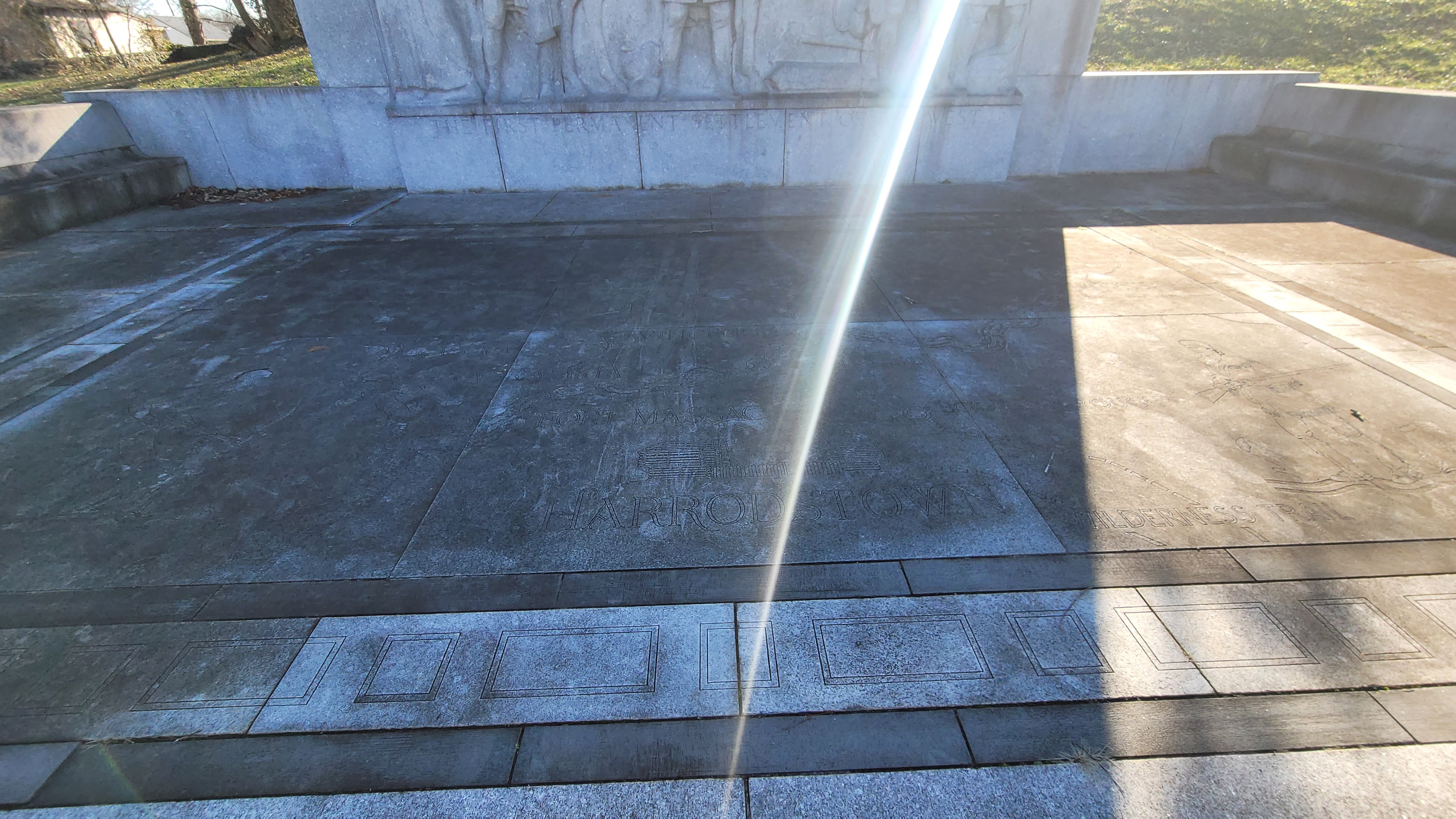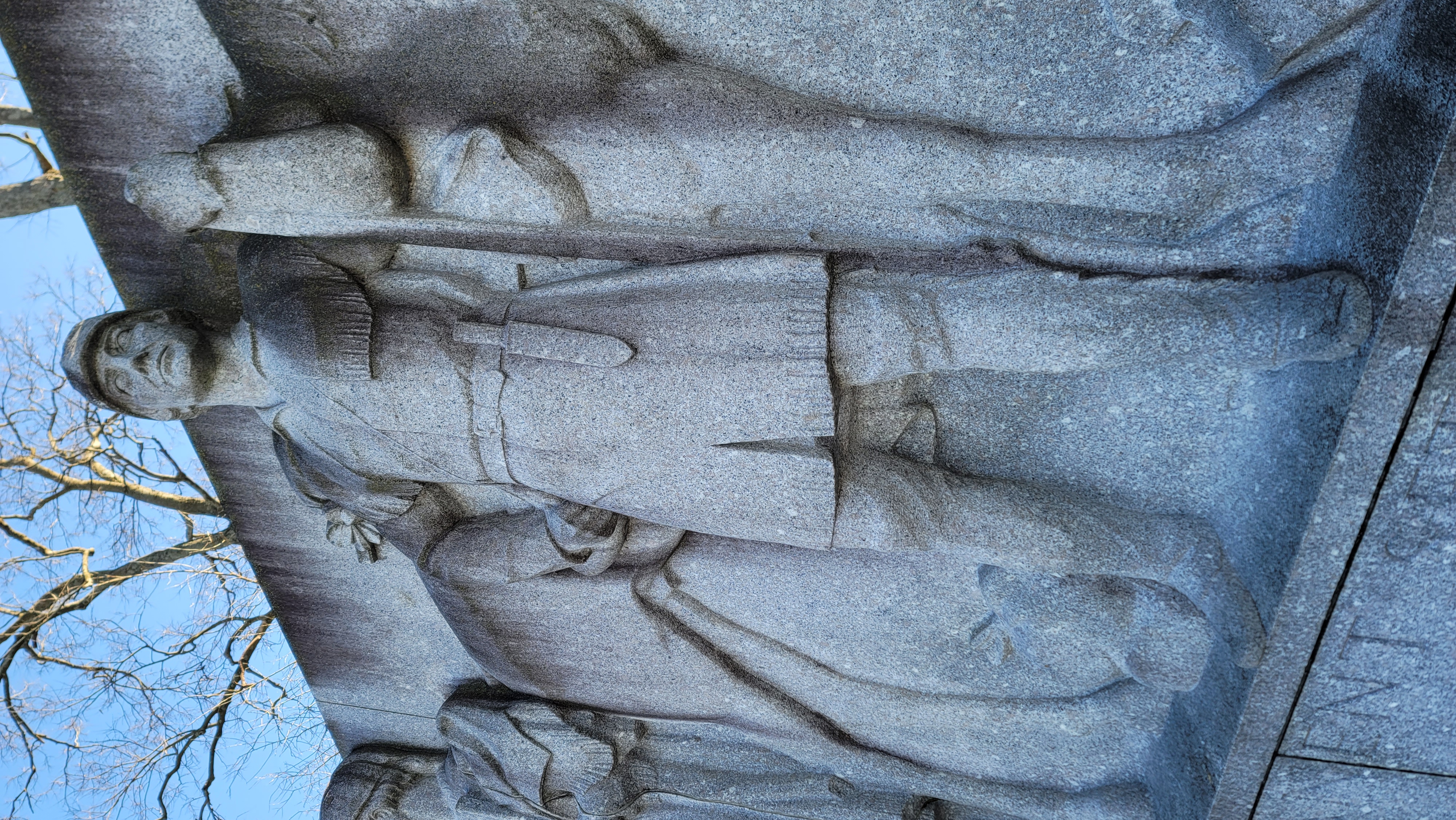 This striking carved‑stone monument at Old Fort Harrod State Park honors General George Rogers Clark, the Revolutionary War commander whose bold frontier campaigns helped secure the vast Northwest Territory for the young United States. The monument features a dramatic bas‑relief panel depicting scenes from Kentucky’s early frontier era, commemorating both the challenges and triumphs of the region’s first settlers.