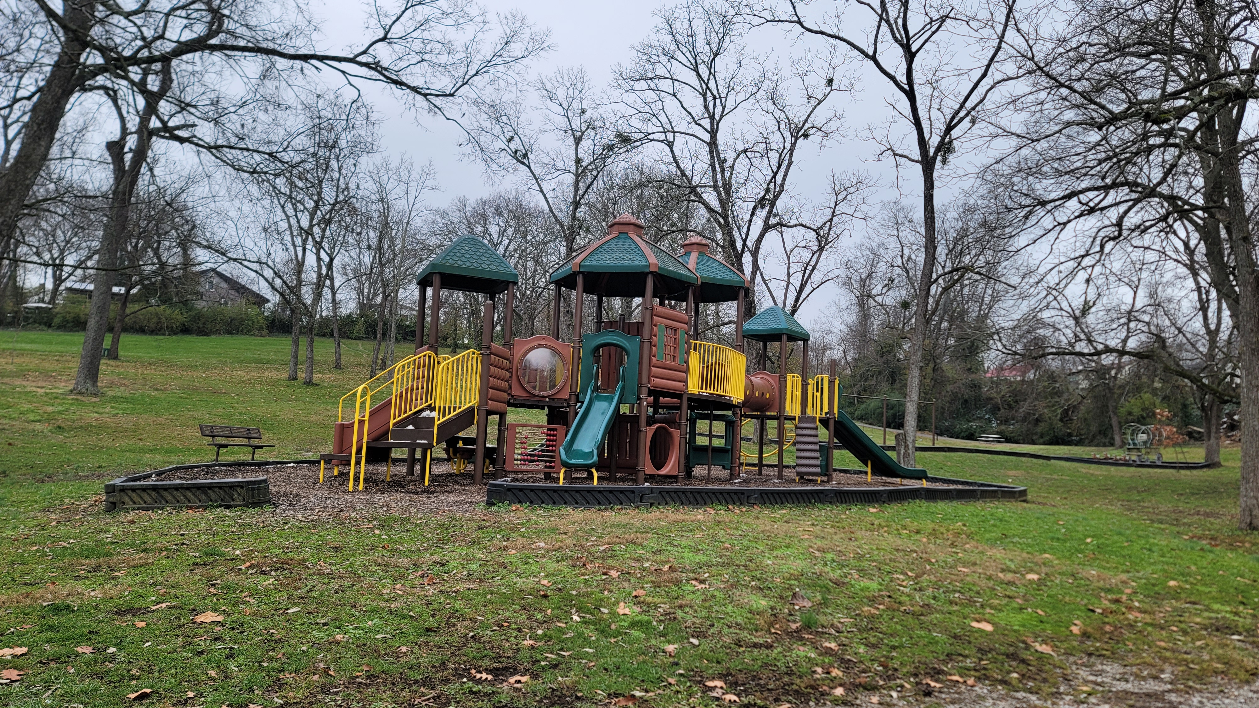 Nestled just behind the amphitheater at Old Fort Harrod State Park, the picnic and playground area offers a peaceful, family‑friendly retreat within one of Kentucky’s most historic settings. Shaded by mature trees and surrounded by rolling green lawns, this spacious outdoor area provides ample room for children to play, families to relax, and visitors to unwind after exploring the fort and museum.